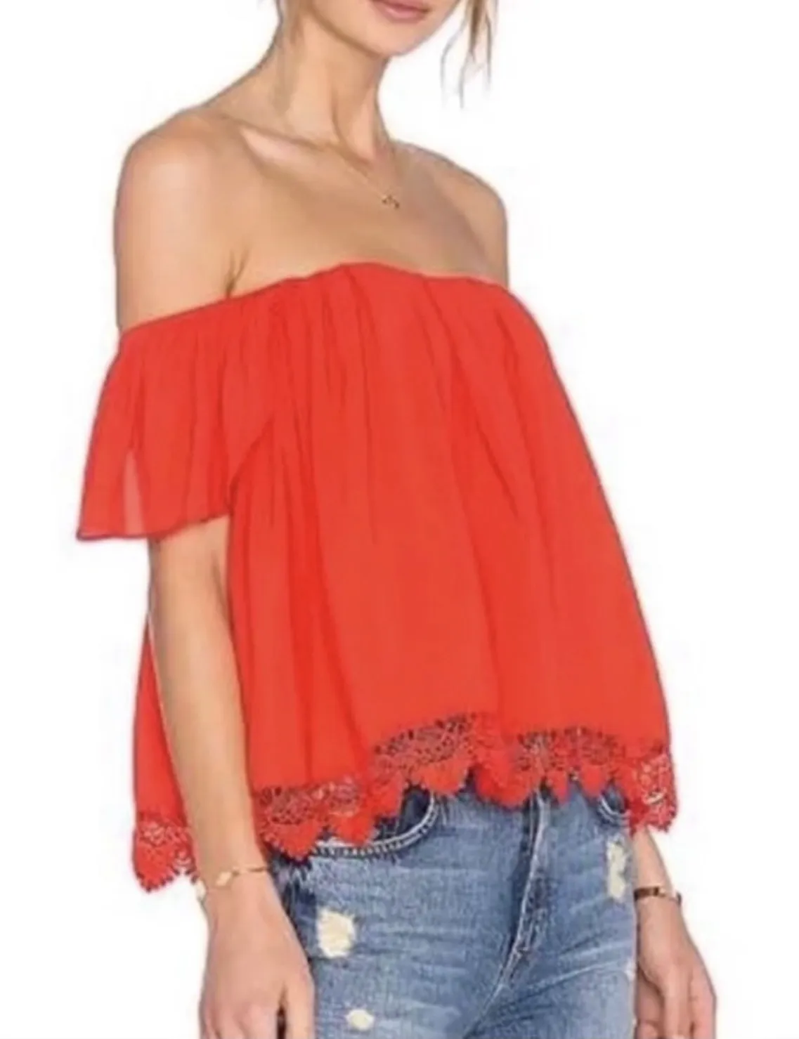 Lovers + Friend Red Blouse Size XS Cold shoulder Pre-Owned. Great condition Hand wash “E”