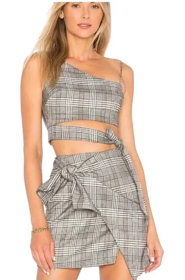 Lovers + Friends Houndstooth Julie Faux Wrap Checkered Mini Skirt NWT Measurements Laying Flat!!... Show more