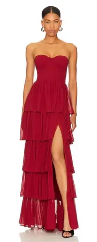 New no flaws Introducing Lovers and Friends' Deep Red Hattie Gown. With a boned corset-style bodice... Show more