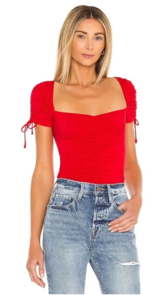 Lovers And Friends Jupiter Bodysuit Ruched Short Sleeve Red XS New Coquette Chic