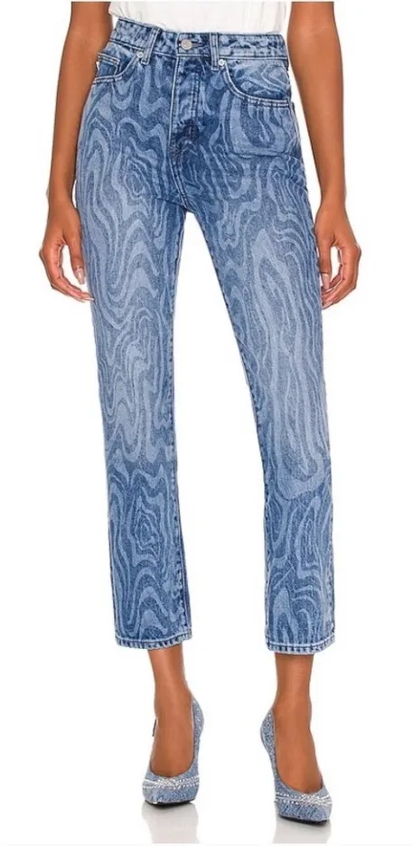 NWT Lovers and Friends Reece High Rise Slim Straight Blue Canyon Wave Jeans 26 Measurements: • Wai... Show more