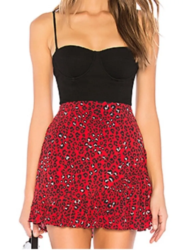 13.5” waist 14” length The LOVERS + FRIENDS red Sahara Cheetah Print Lena A Line Mini Skirt in Si... Show more