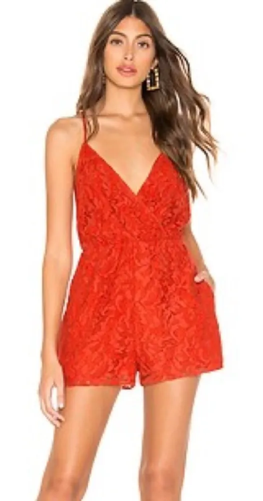 Lovers and friends Gretta Faux Wrap Romper in Deep Cora Red size small. Pockets. Keyhole back. Good... Show more