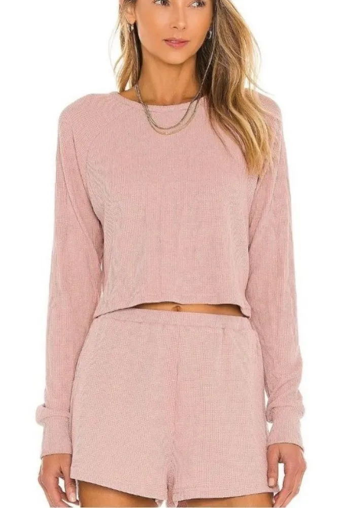 Lovers + Friends Sadie Waffle Knit Top in Rose Size Small Great condition. No rips, stains or flaws.... Show more