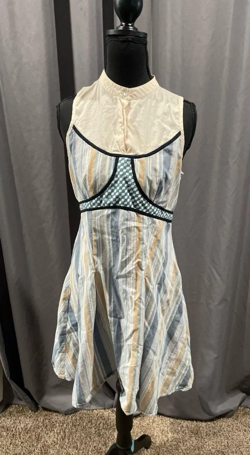 Free people Size 6 Sleeveless dress Striped design Zipper on side Can be worn button or unbuttoned V... Show more