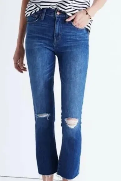 Style Details: Madewell brand. 10” High Riser Demi Boot style. Distressed hem and knees are part of... Show more