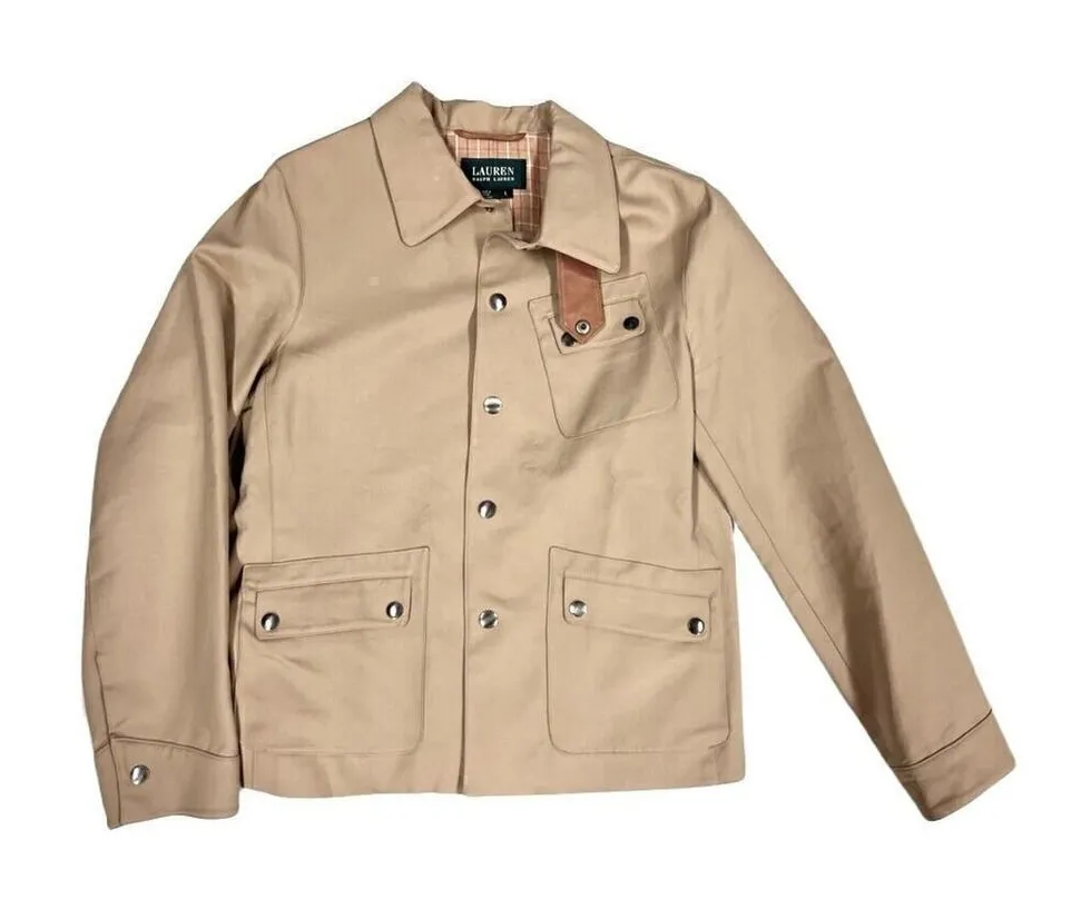 Gorgeous unique LRL Ralph Lauren Green Label Snap Jacket Leather Trim NWOT Women L 14 Tan like new,... Show more