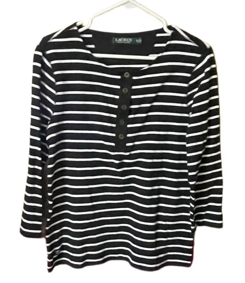 LRL Ralph Lauren size XL 100% cotton striped nautical top.fax button front. Pull on style . 3/4 leng... Show more