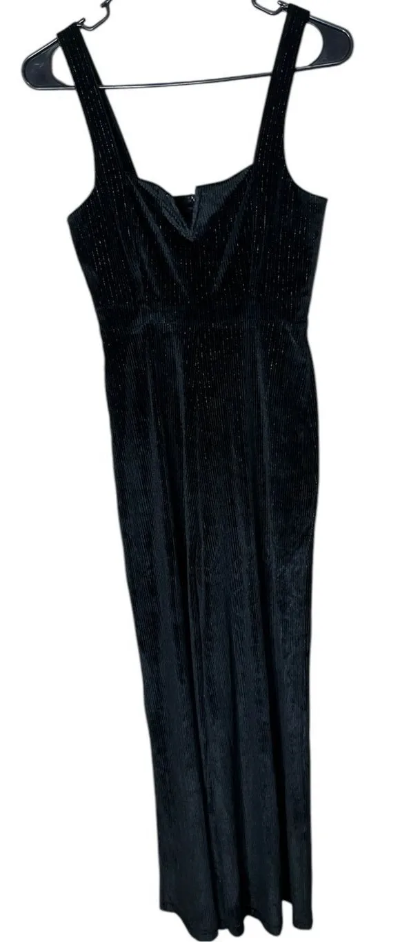 L*SPACE Black Silver Metallic Vera Velvet Ribbed Wide Leg Jumpsuit XS. Great condition. !!!!PLEASE... Show more