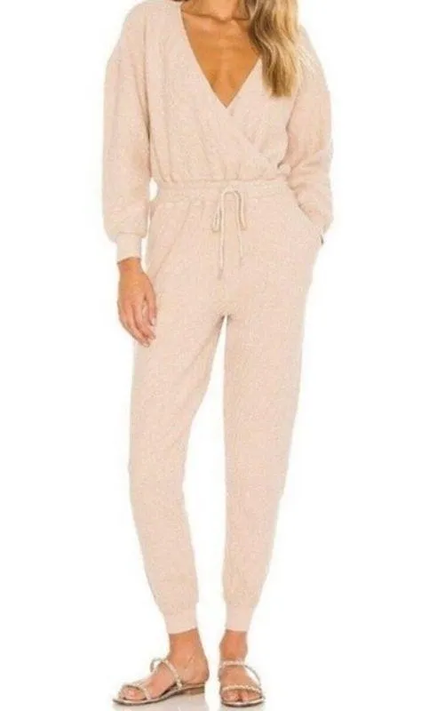 L Space Womens XL Coastin Jogger Jumper Jumpsuit Tan Beige Sandstone Faux Wrap Drawstring Waist Pock... Show more