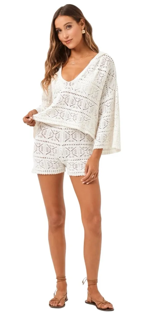 New With Tags L Space •White •Hooded •Open Knit •100% Cotton •Long Sleeve •Cropped •Resortwear •Lou... Show more
