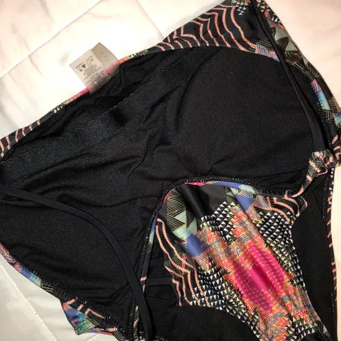 -Bobo colorful prints -V-shaped slits along stomach with string attachments -Built-in padding -Neck ties -85% polyester, 15% spandex -Super comfortable -Never worn! -Only tried on -Great condition!