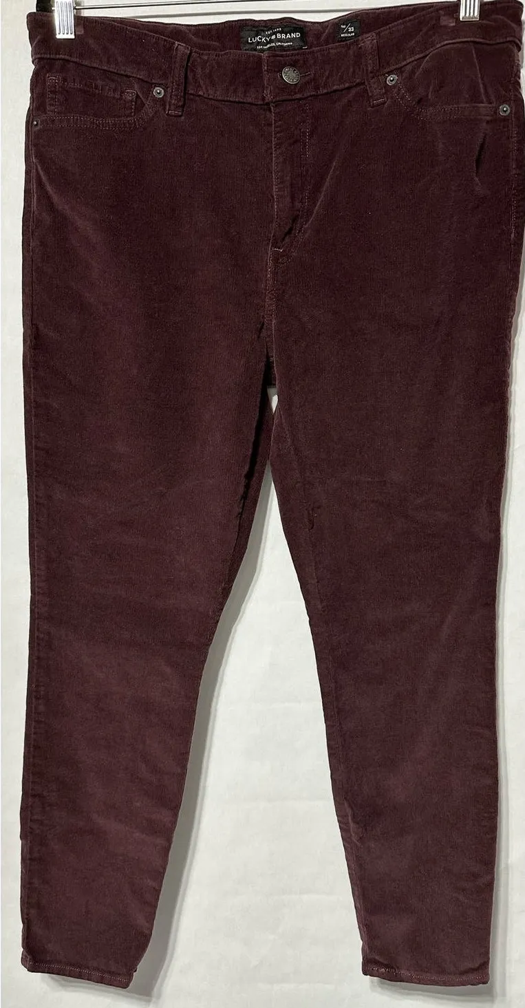 Lucky Brand Ava Skinny Maroon/Plum Micro Corduroy Pants Size 33/16