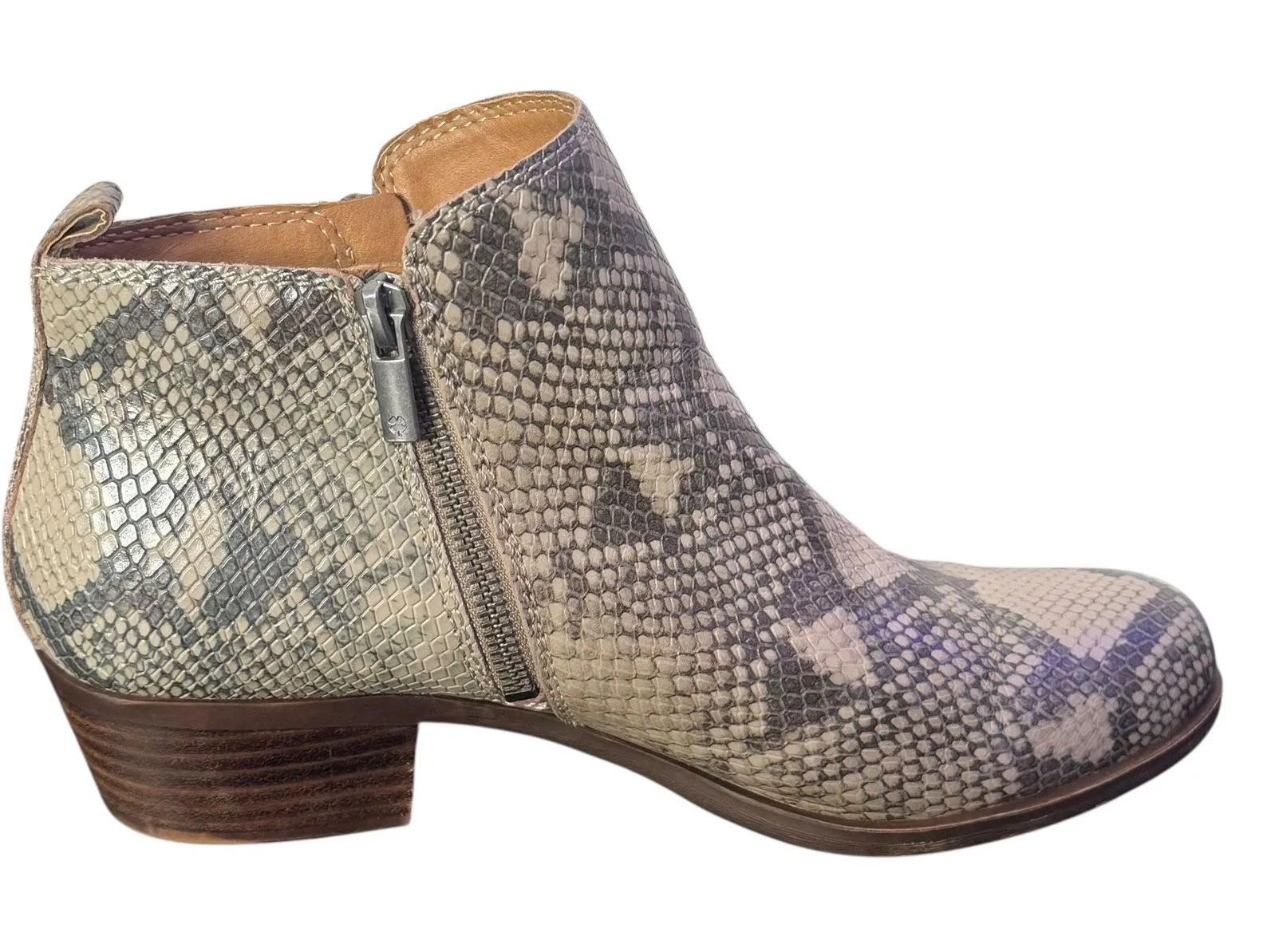 Lucky Brand Basel Booties Snakeskin Print Ankle Boots Zip Up Womens 9.5 Leather Pre Owned, In Great... Show more