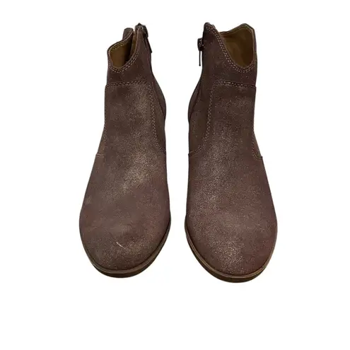 Lucky Brand Belia Leather Ankle Booties Boots Color: Tobacco Distressed Metallic Size 9 Gently us... Show more
