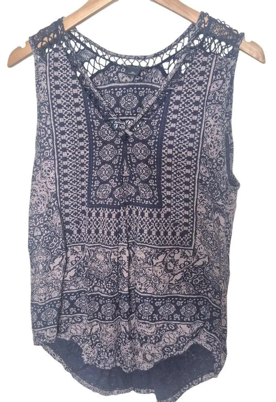 Condition: Great pre-owned Size: Medium Color: Blue, Cream Material: Unknown, no material tag Flaws... Show more
