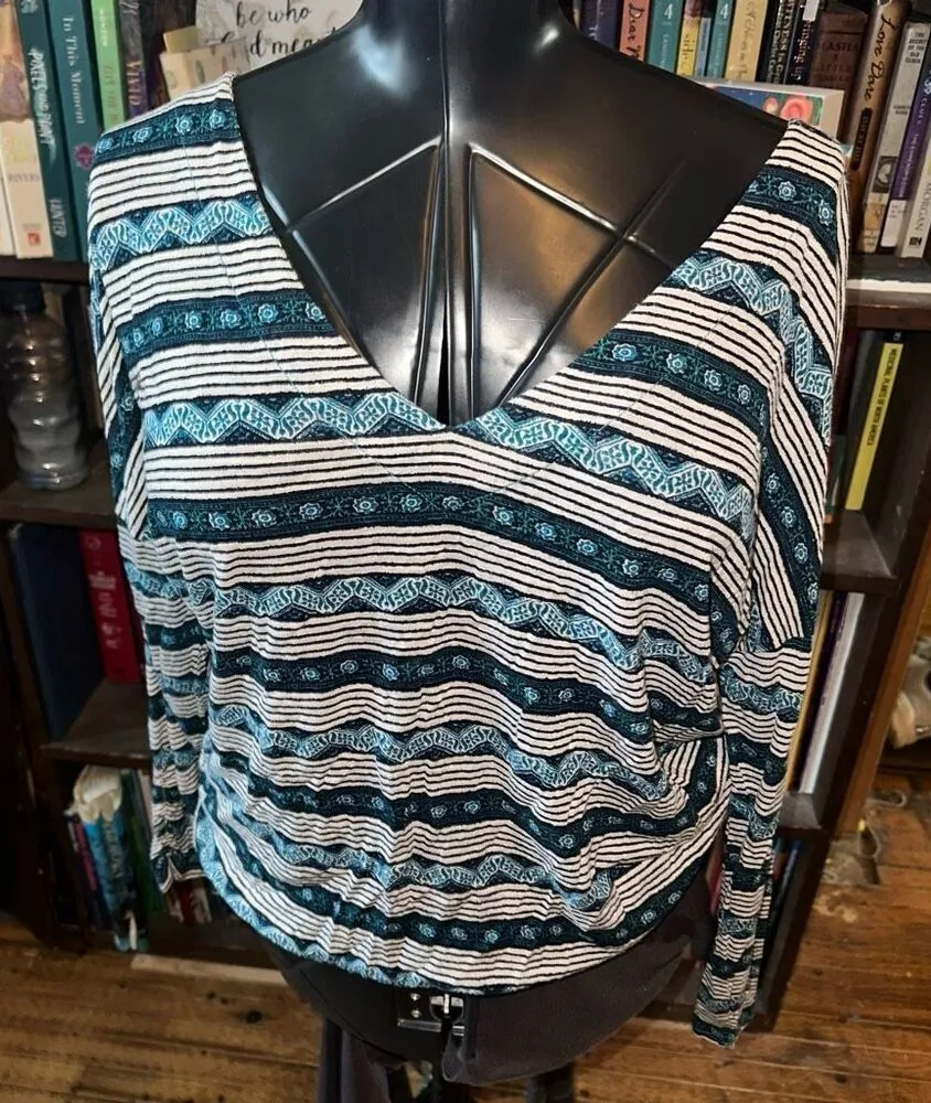 Lucky Brand southwest, tie back, knit, normcore, v-neck top. Pairs well with jeans or leggings . App... Show more