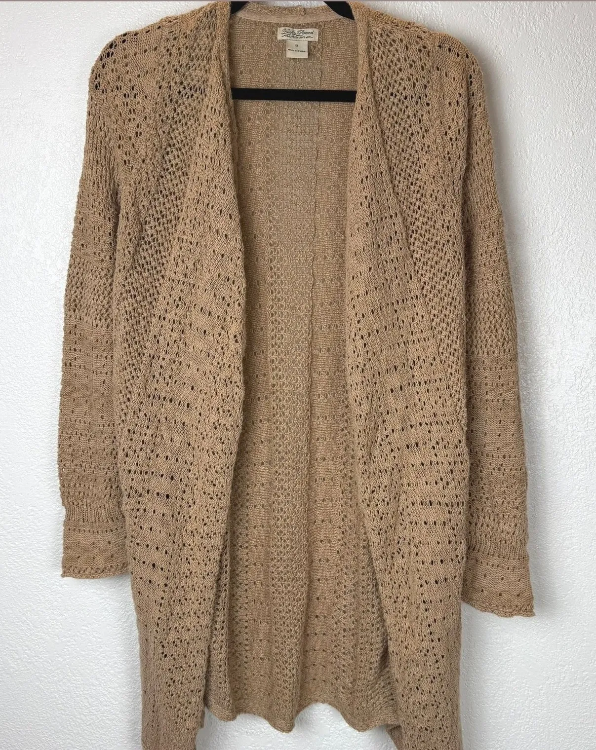 Lucky Brand Boho Open Knit Longline Cardigan Neutral Tan Size S Style: Cardigan Department: Women... Show more
