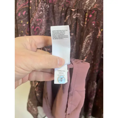 Lucky Brand babydoll-style dress in brown paisley print featuring long sleeves, button front, and a... Show more