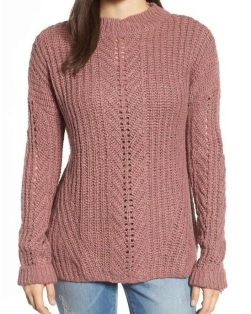 Lucky Brand Open Stitch Pullover Crewneck Knit Sweater Chunky Pink Boho Size Small Features a richl... Show more