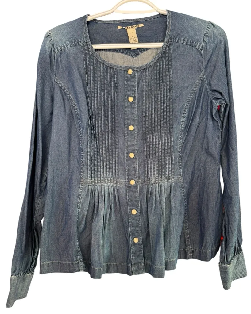 Lucky Brand Denim Longsleeve Cotton Western Style Top Size small Pit to pit: 18” Length 23” Deni... Show more