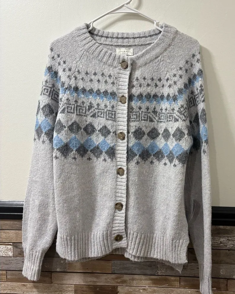 Stylish cardigan with geometric patterns. Features button closure. - Lucky Brand - Size medium - N... Show more