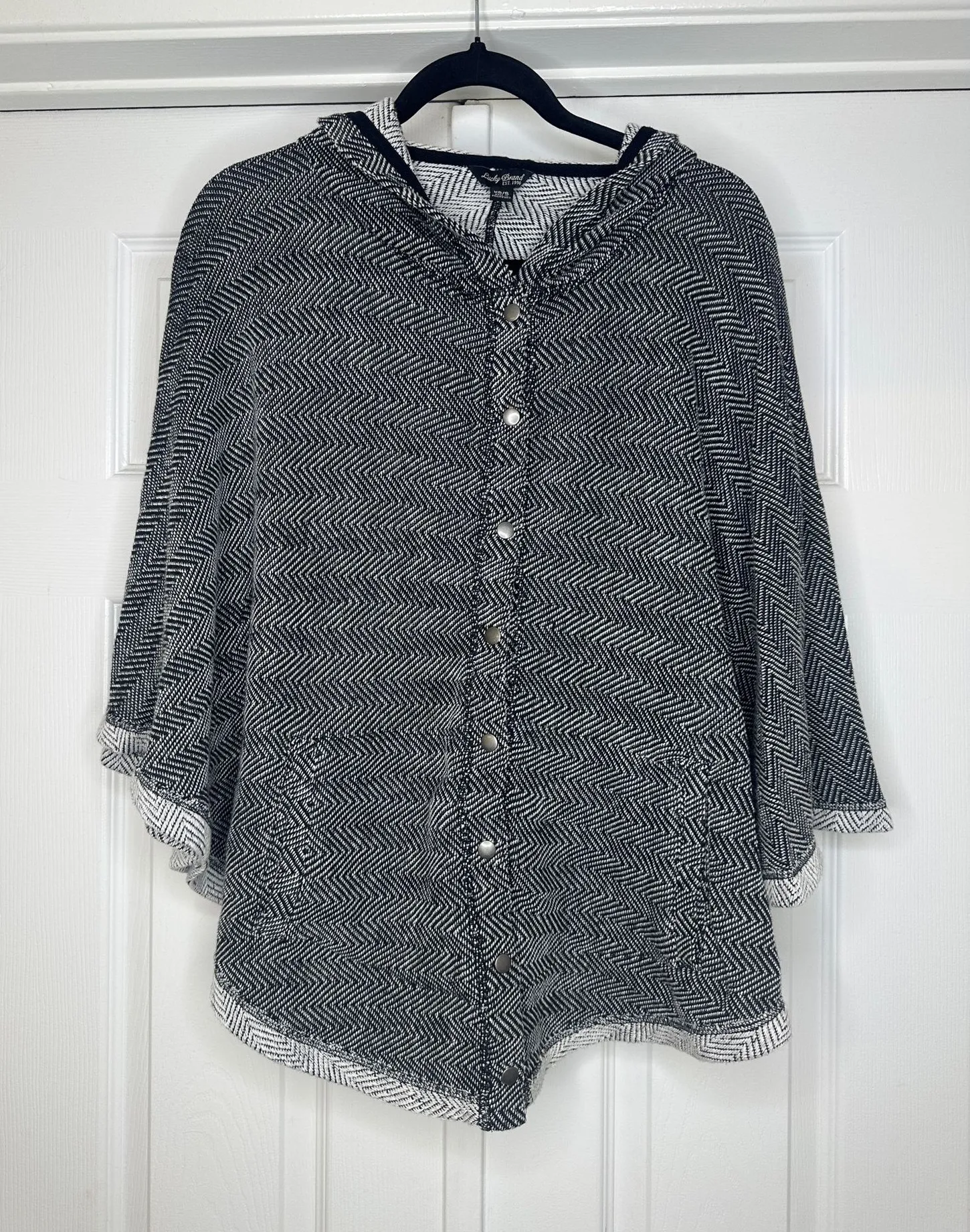 Lucky Brand grey and white chevron poncho, perfect for layering over casual or dressy outfits. Soft,... Show more