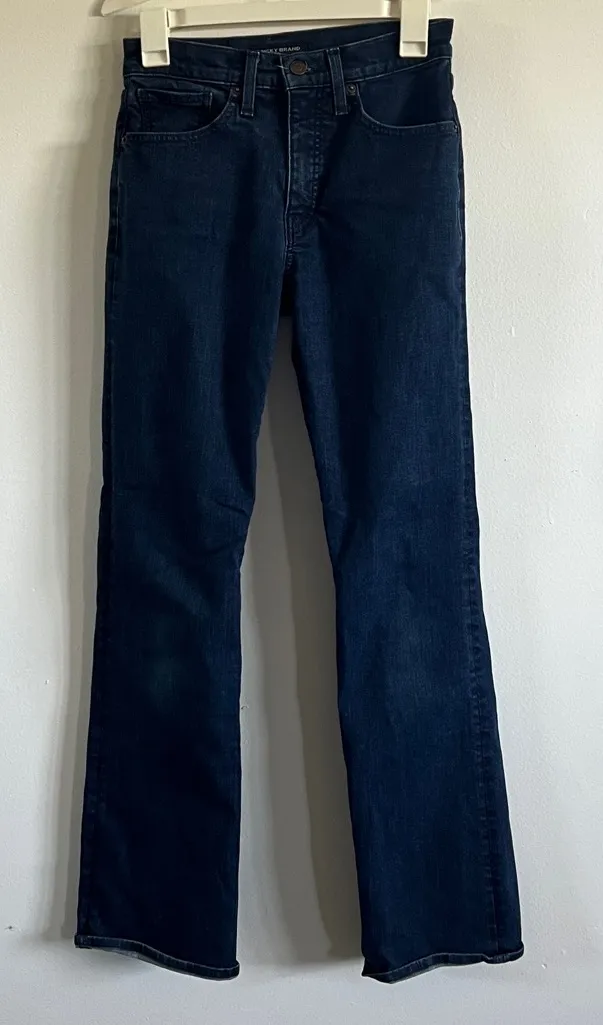 Classic indigo / dark wash denim jeans from Lucky Brand. Size 2/26R. Boot cut. Gently worn and in g... Show more