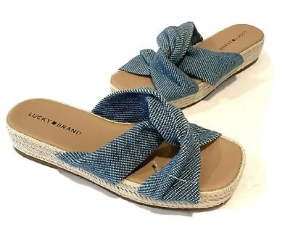 ✨ Best in Shoes HP 7-9-2022✨ Lucky Brand Grenly Blue Fabric Twist Espadrille Slide Sandals with tren... Show more