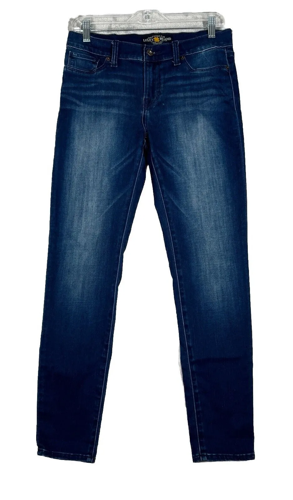 Lucky Brand Jeans Womens 6 28” Blue Dark Brooke Legging Jean Fading Whiskering Women's Size 6 (28")... Show more