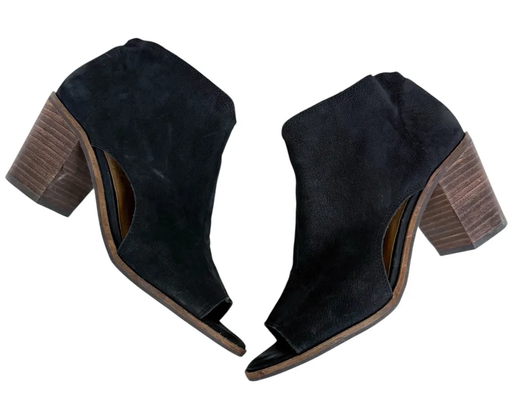 Lucky Brand Keteera Black Leather Open Toe Cut Out Ankle Bootie Boot Size 7 Some wear as shown. Scu... Show more