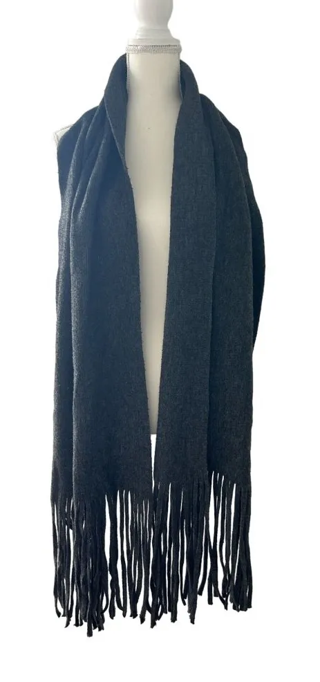 Wrap up in style with the LUCKY BRAND Long Gray Knit Fringe Unisex Scarf. This versatile accessory o... Show more