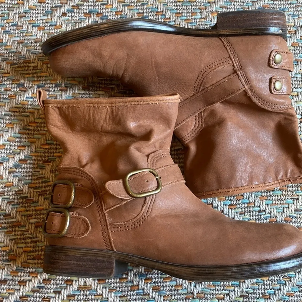 Luck Brand Norton Leather Moto Buckle Boots Booties Tan 9.5 Good pre loved condition *no issue... Show more