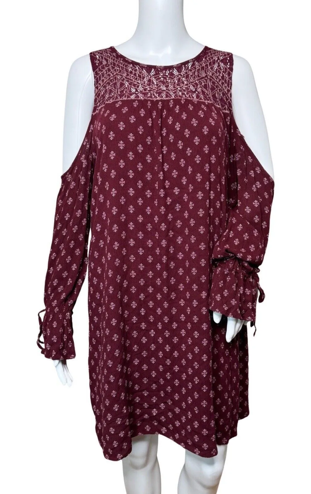 Lucky Brand Dress Womens Large Burgundy White Geometric Boho Bohemian Peasant Women’s Size Large L... Show more
