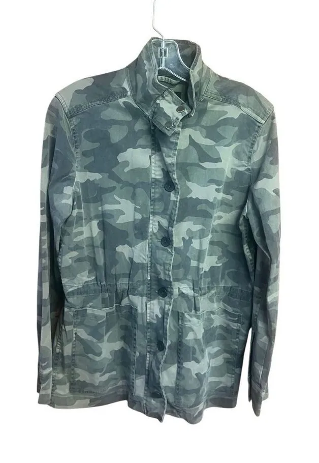 Lucky Brand hooded utility jacket Green Camo Sz S NWT Button , zipper Closure