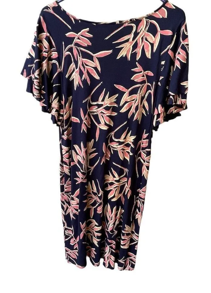 Lucky Brand size L tropical floral print. Flutter sleeves. Double layer flutter sleeves with raw hem... Show more