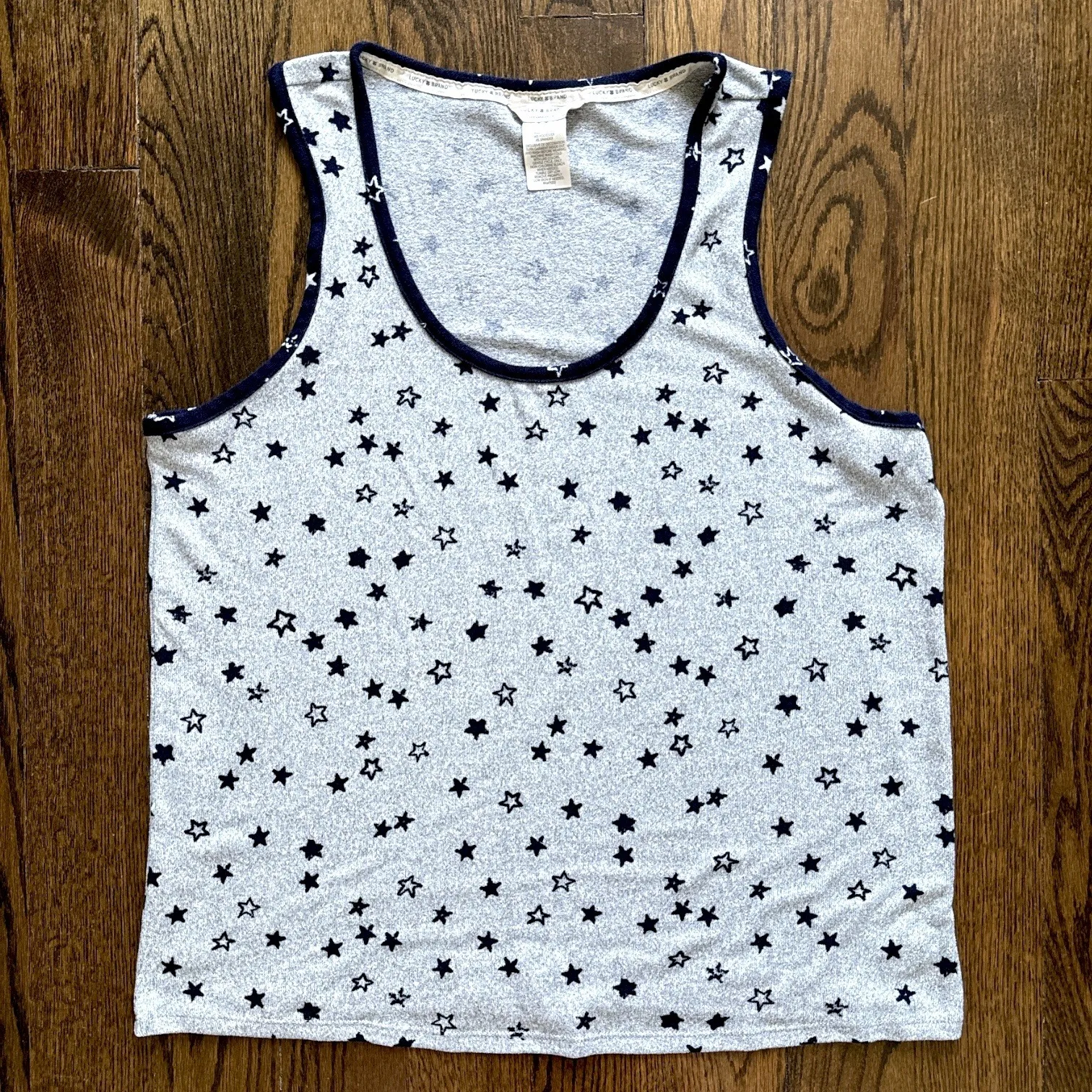 Preowned in good condition. This Lucky Brand women's tank top features a subtle star print in blue a... Show more