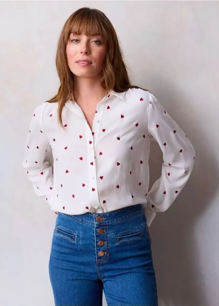 Lucky NWOT White and Red Heart Print Women's button up - small Chic and stylish women's top featur... Show more