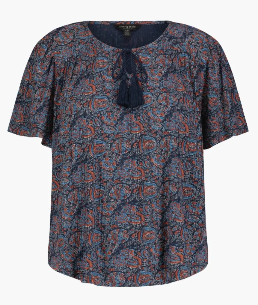 ◇ Lucky Brand ◇ Paisley Split Neck T-Shirt 7wp6770 / 7648248 ◇ size large ◇ shirt t-shirt tee and/or... Show more