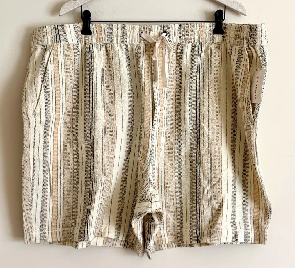 Lucky Brand paperbag shorts in a women’s 2XL, new with tags. High-waisted striped shorts with an ela... Show more