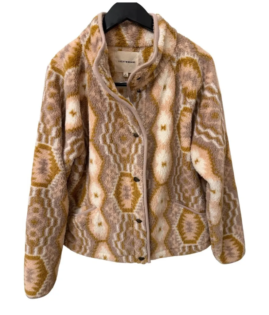 Cozy statement jacket from Lucky Brand featuring a soft sherpa fleece texture with a bold boho-inspi... Show more