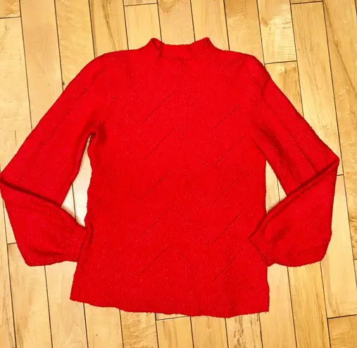 Red, Lucky Brand sweater. Size small. Small red dot on tag. Slight high neck detail. Sleeves are loo... Show more