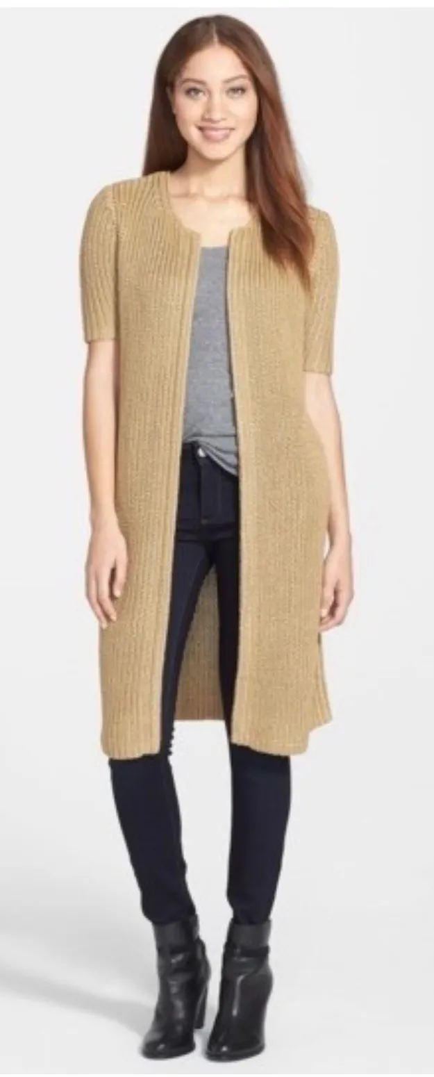 Lucky Brand Short Sleeve Metallic Long Rib Knit Cardigan Sweater Retail $129 Size medium Approx me... Show more