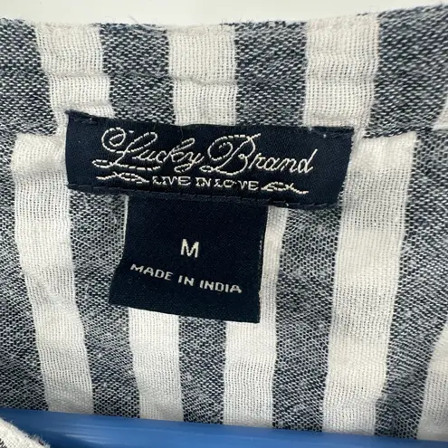 Lucky Brand Size M / Medium Woman´s Blouse Shirt Top Long Sleeve White and Gray Striped Embroidered... Show more