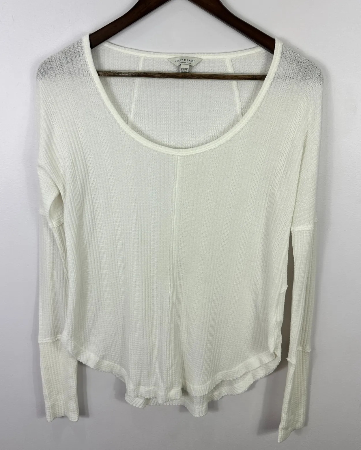 Lucky Brand Thermal Top XS White Waffle Knit Long Sleeve Soft Grunge Minimalist Layer Condition: Ex... Show more
