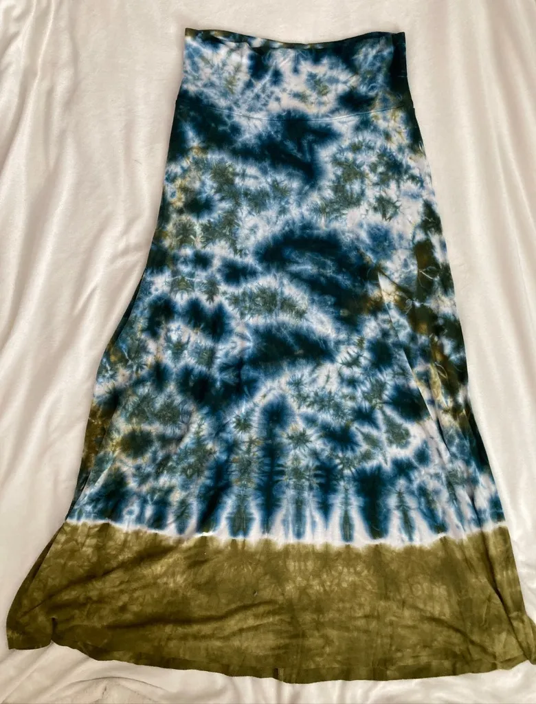 Lucky Brand Tie Dye Maxi Skirt Blue Green Boho Hippie Indie M/L Gorgeous Lucky Brand tie-dye maxi s... Show more