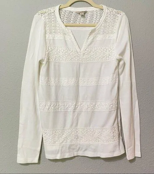 Lucky Brand White Long Sleeve Embroidered Blouse Boho M Preowned in excellent condition UUU72