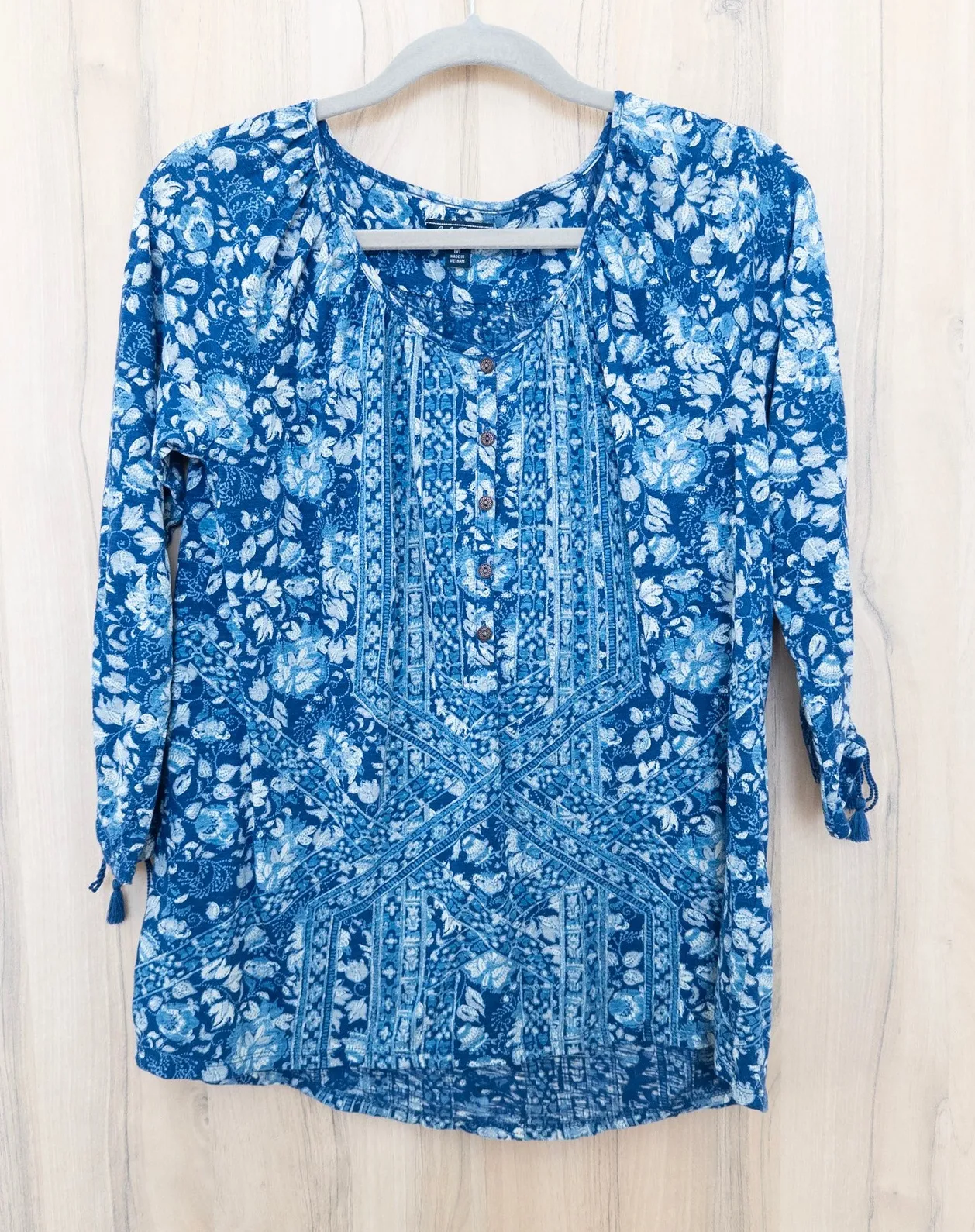 Lucky Brand women's blue floral print top. This comfortable top features a classic scoop neckline wi... Show more