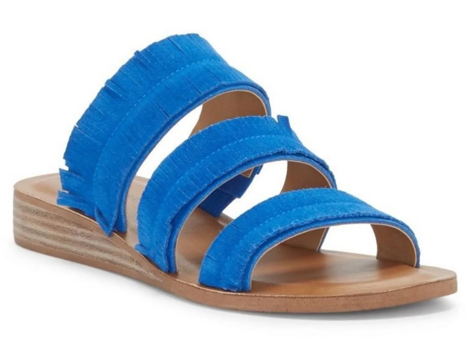 Lucky Brand Women's NIB Hegan Blue Suede Fringe Slide Flat‎ Sandal 9.5 NEW - $53 New With Tags - From Tomi