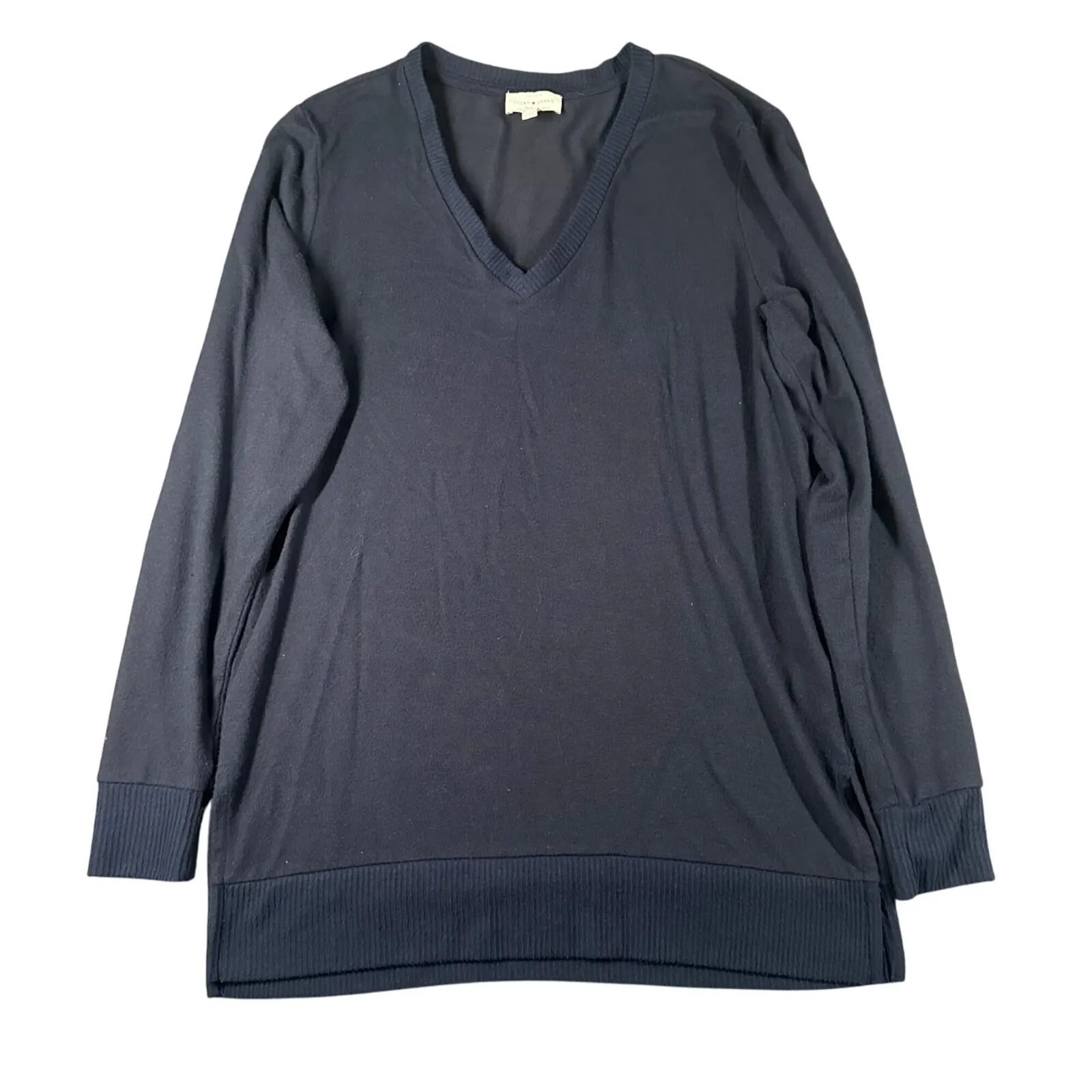 Lucky Brand Women's S Navy Blue V-Neck Long Sleeve Tunic Sweater Soft Split Hem. 60% Viscose, 36% P... Show more